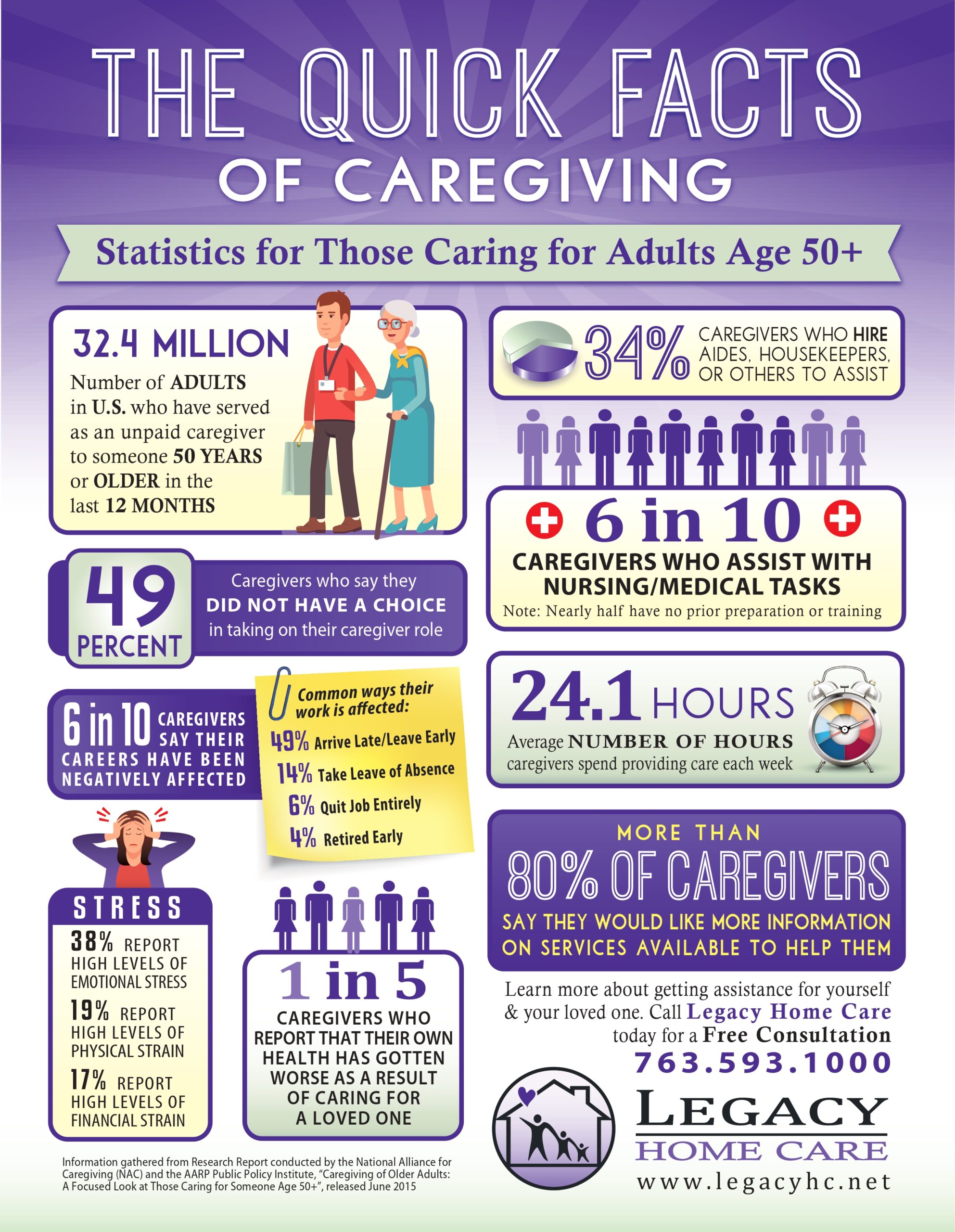 Caring for a loved one is stressful upon balancing a career and providing for your family. 38% of people report high levels of emotional stress, 19% report high levels of physical strain, and 17% report high levels of financial strain. However this can all be avoided by allowing Legacy Home Care to help you out and give undivided attention and care to your loved one.